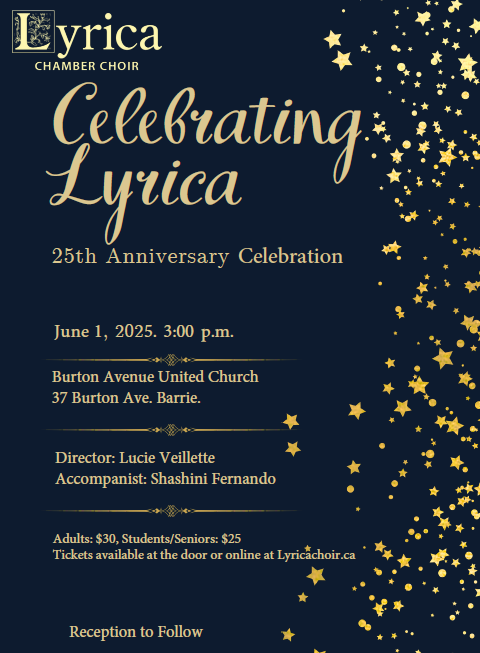 There will be a concert by Huronia Symphony on February 1st, 2026, at Collier Street United Church. Stay tuned for more details!