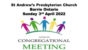 St Andrew’s Presbyterian Church Annual Congregational Meeting 3rd April, 2022